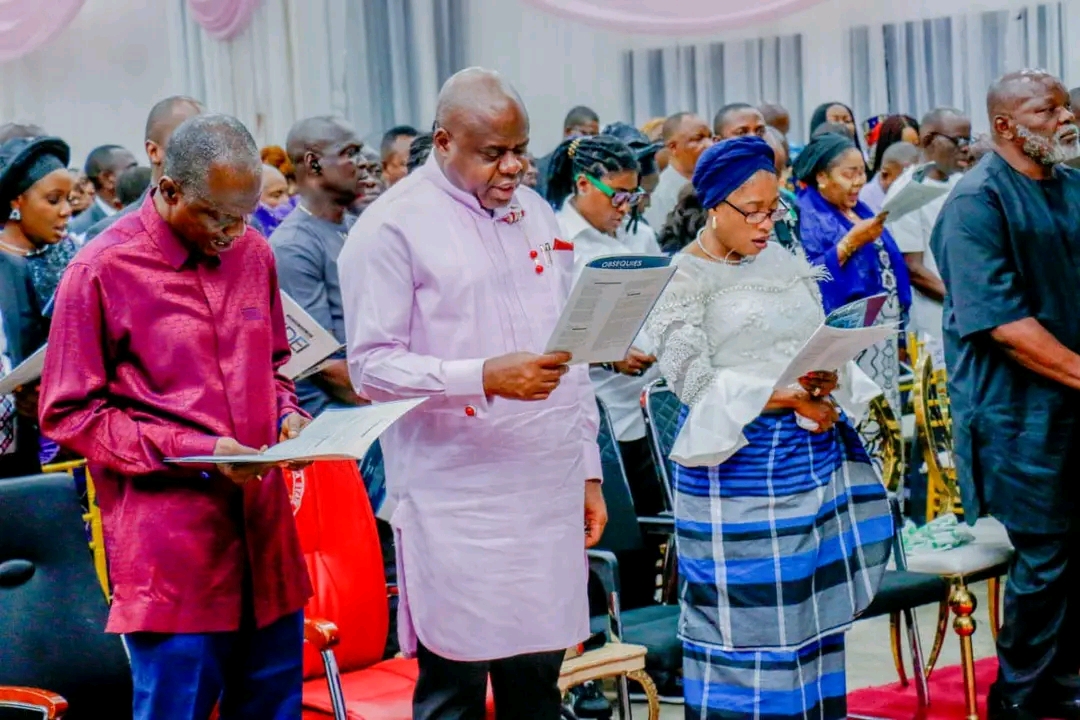 Bayelsa State Governor, Senator Douye Diri in company of his wife, Dr. (Mrs) Gloria Diri few days ago, attended the service of songs in honor of the late Commissioner For Women Affairs and Social Development, Mrs Elizabeth Bidei.