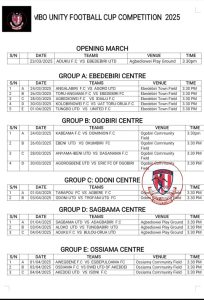 The kick-off of the football tournament is scheduled to hold on the 23rd of March, 2025, at Agbadiowei Playground, Mile 3, Sagbama Town at 3pm. Other matches will follow suit as scheduled in other outlined centres.